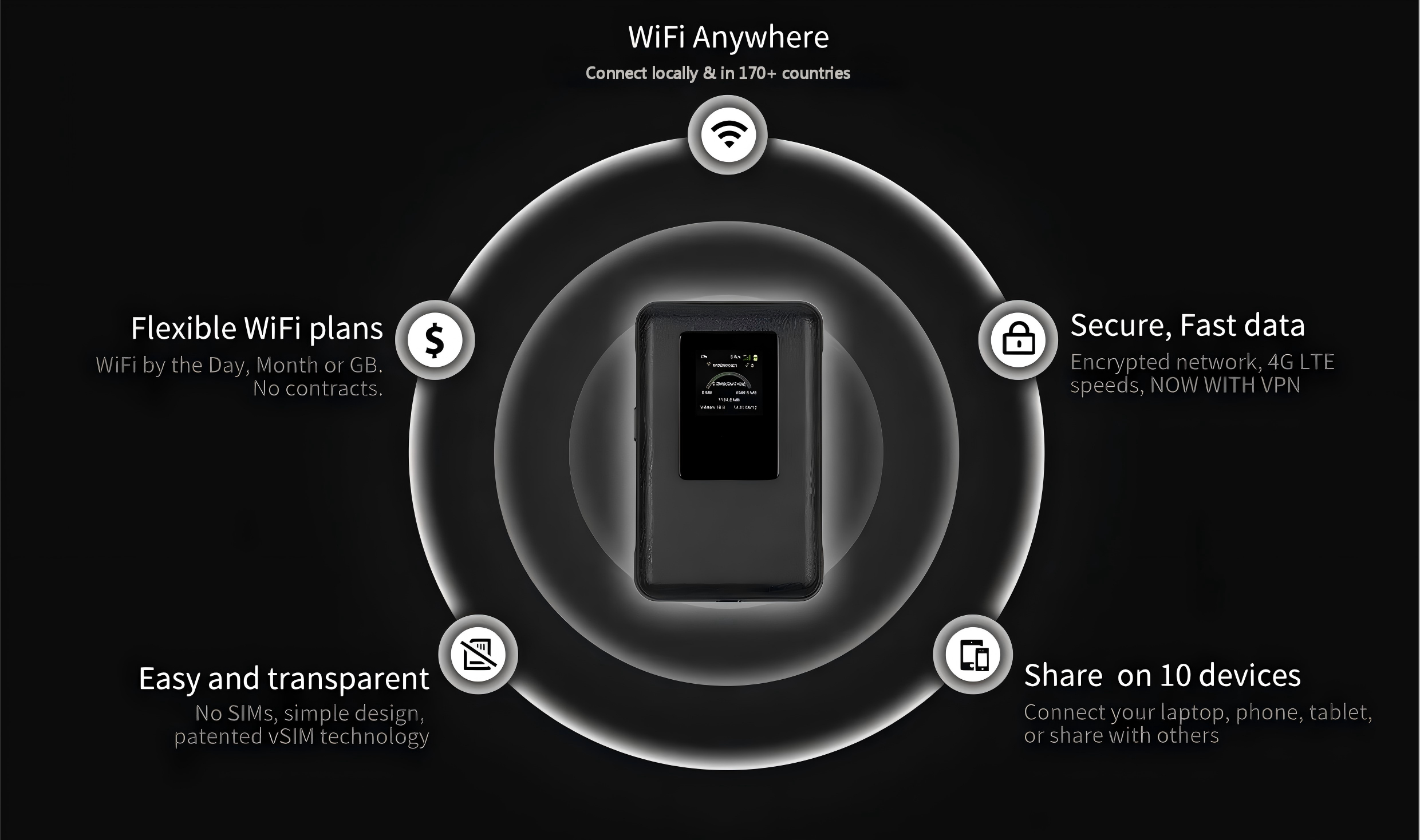 With screenless design and compact body (110*70*15.85mm), it weighs only 150g, easy to put in your pocket and carry around. Battery 3850mAh Li-ion polymer battery, optimized battery management system provides long-lasting battery life to meet your all-day network needs without frequent charging.